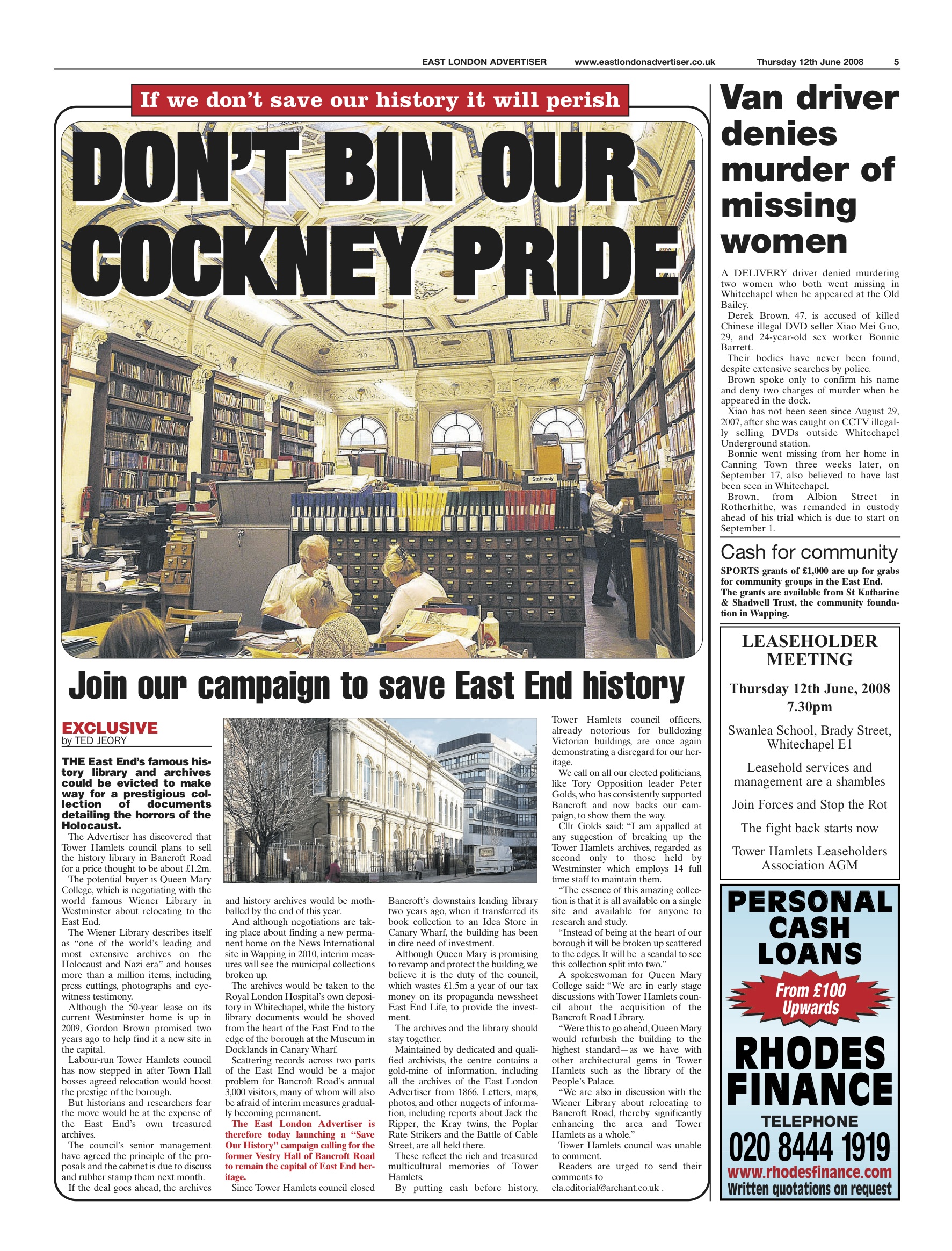 The plans included breaking up the collections, which included all back copies of the East London Advertiser, between two sites at the Museum of Docklands and the archive at the Royal London Hospital. If the hospital archives were unable to take any records, locations outside the borough were to be considered.
