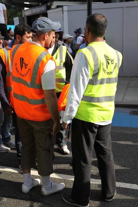 I congratulated the stewards in my last post but I fail to see the need for a mini-army of marshalls patrolling the East London Mosque. Are the IFE and the mosque hyping up the threat?