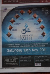 It’s an advert for the Twins of Faith event at the Excel Centre in Newham. As you can see, Abdissalam is one of the speakers.