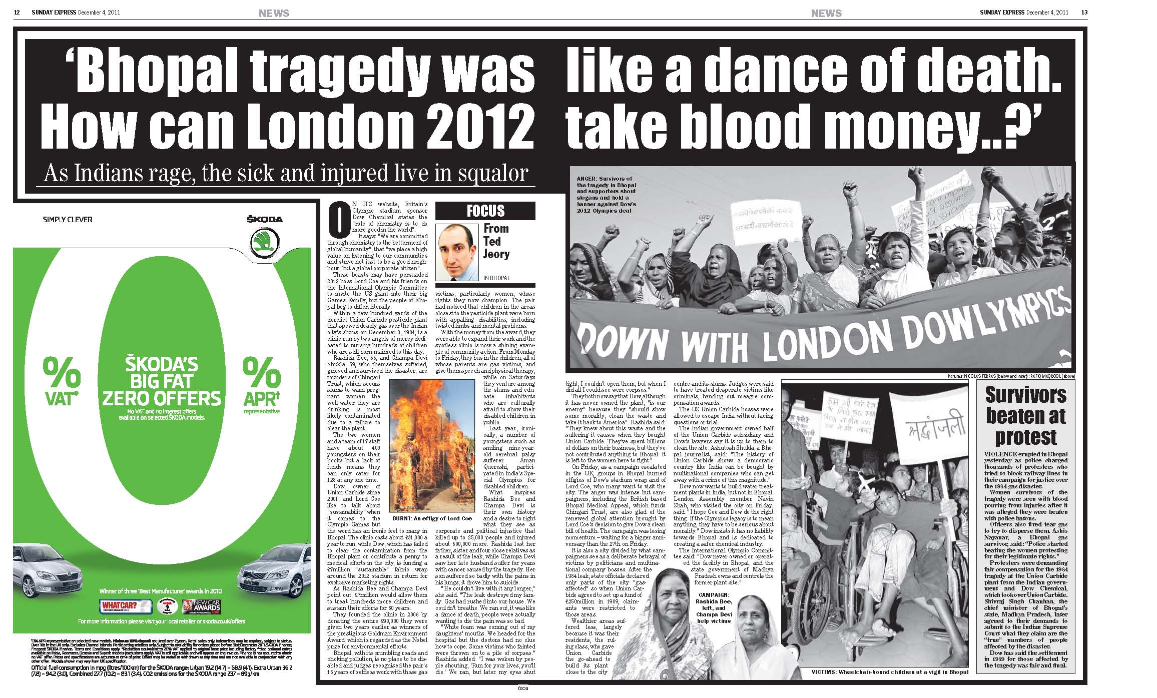 Dow, owner of Union Carbide since 2001, and Lord Coe like to talk about “sustainability” when it comes to the Olympic Games but the word has an ironic feel to many in Bhopal. The clinic costs about £31,000 a year to run, while Dow, which has failed to clear the contamination from the Bhopal plant or contribute a penny to medical efforts in the city, is funding a £7million “sustainable” fabric wrap around the 2012 stadium in return for exclusive marketing rights.