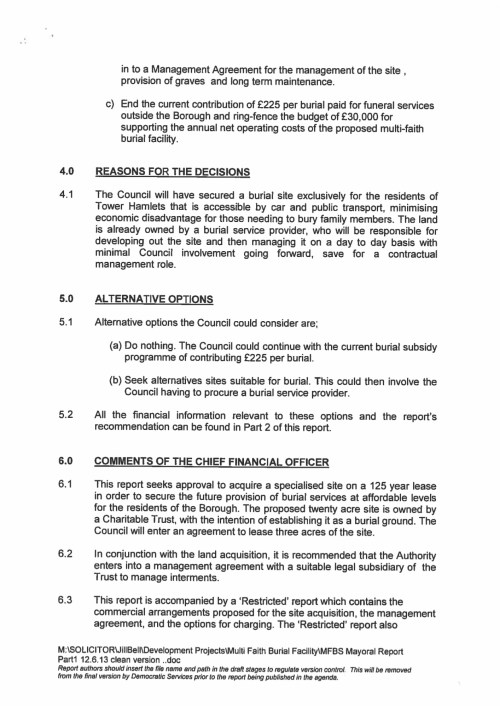 £3m for new Tower Hamlets only “multi-faith” cemetery – by the M25. » 5 0033b – Multi-Faith Burial Site – Part I Report