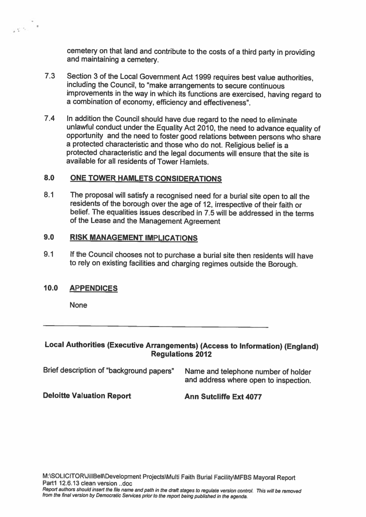 £3m for new Tower Hamlets only “multi-faith” cemetery – by the M25. » 7 0033b – Multi-Faith Burial Site – Part I Report