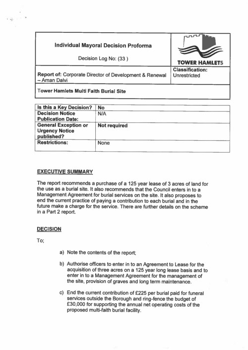 £3m for new Tower Hamlets only “multi-faith” cemetery – by the M25. » Tower Hamlets Multi Faith Burial Ground