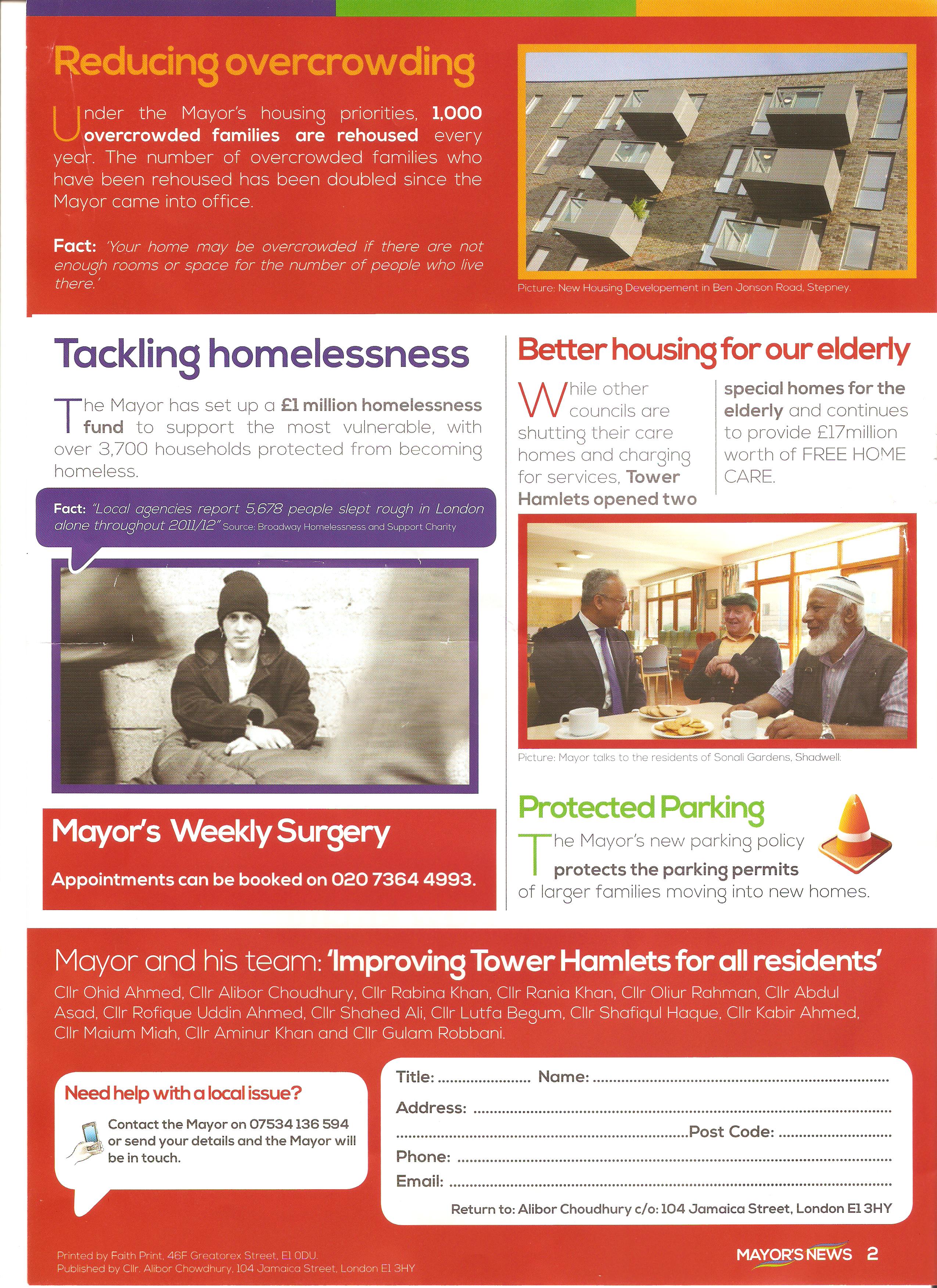 The Mayor’s News. Quite why he needs it when he has the multimillion pound machine that is East End Life at his disposal is something of a mystery. For the avoidance of doubt, this leaflet will have been funded privately not from our council tax.