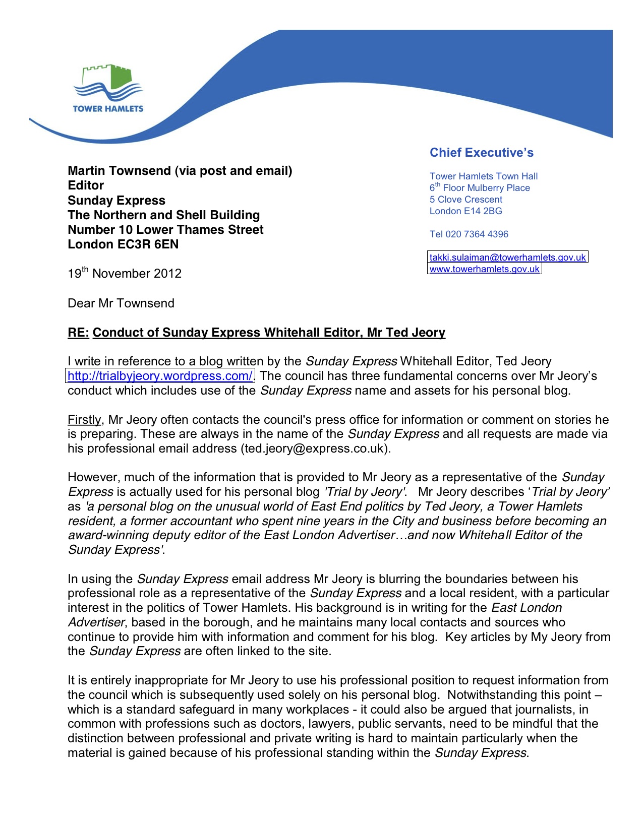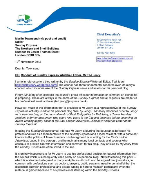 Attempts by Tower Hamlets council to close down this blog » Sunday Express re TJeory blog 191112-4