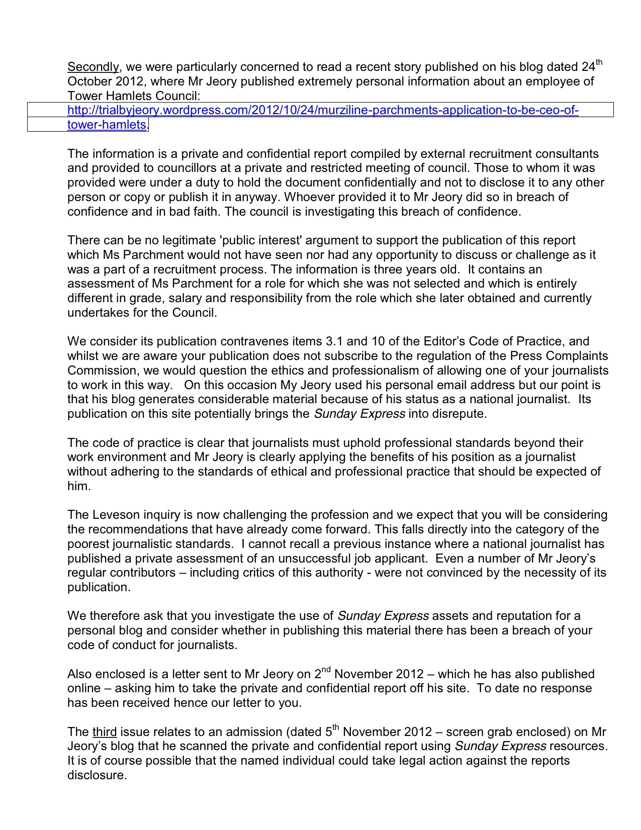Attempts by Tower Hamlets council to close down this blog » Sunday Express re TJeory blog 191112-5
