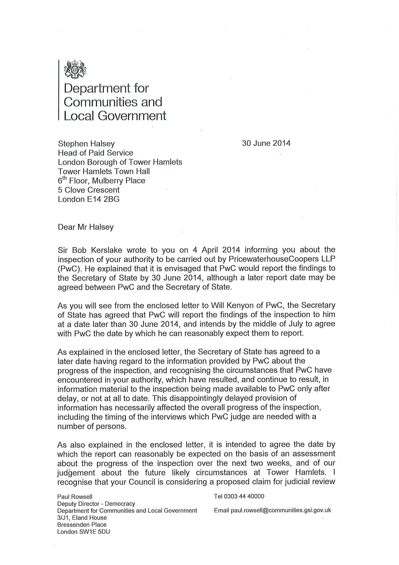 John Williams, the busy head of ‘democratic services’ at Tower Hamlets council, wrote this to councillors on July 31: